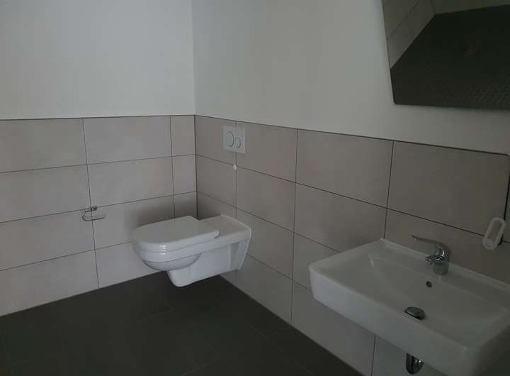 Badezimmer auf Wunsch mit rollstuhlgerechter Ausstattung (siehe Fotos).
