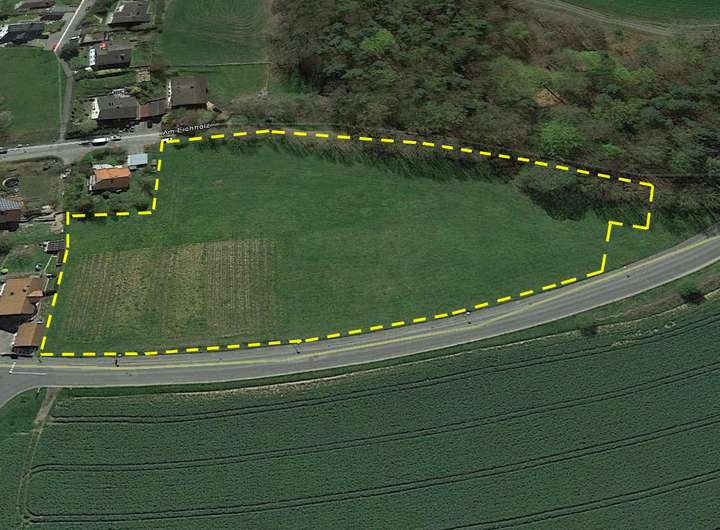 Das erschlossene Grundstück entsteht im neuen Baugebiet "Am Eichhoz" in Rögen. Es befindet sich auf der gegenüberliegenden Seite des Festungsbergs.