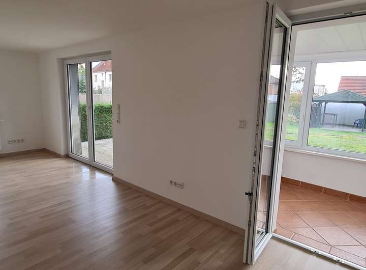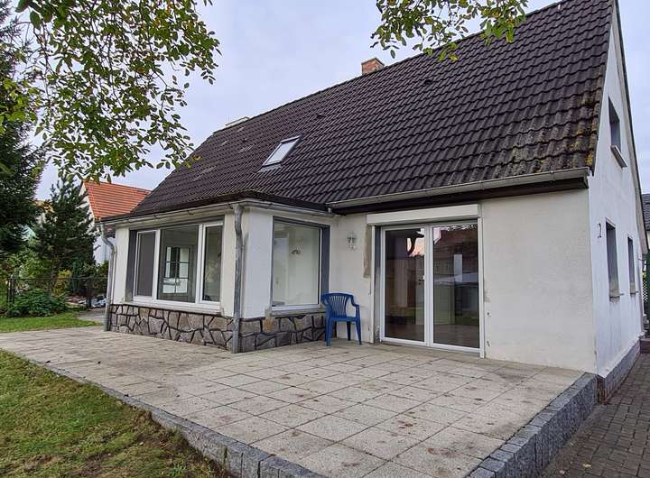 Eine lichtdurchflutete Veranda und ein großer Terassenbereich geben diesem Mietobjekt seinen besonderen Charme. Der monatliche Mietpreis kalt liegt bei 790 Euro inkl. 2 Garagen und Stellplatz.