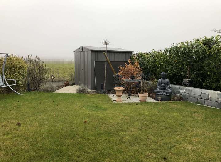 Das Grundstück bietet eine schöne Terrasse mit Glasvordach und einen schön angelegten Gartenbereich mit automat.ischer Bewässerung und einer Gartenbeleuchtung. Carport vorhanden mit Ladeanschluss für E-Auto, Gartenhaus zum Abstellen von Rädern