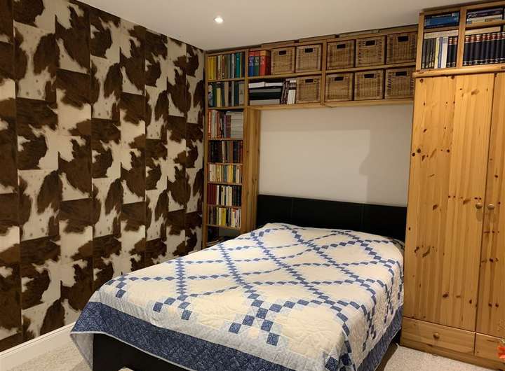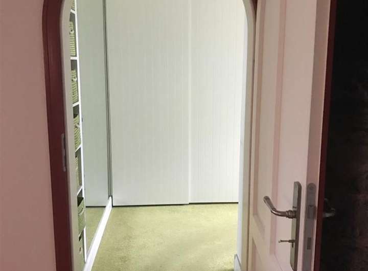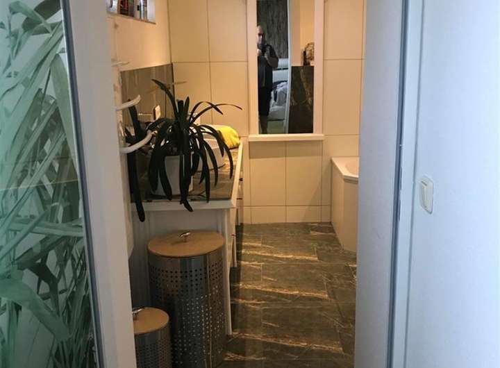 Von hier aus sind alle weiteren Räume, wie die zwei Schlafzimmer, eins mit Ankleidebereich und Zugang in das große Vollbad, das Gäste-Duschbad und der Hauswirtschaftsraum zu erreichen.