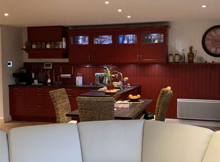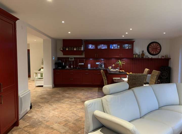 Über den Eingangswintergarten gelangt man in den imposanten, offenen und großzügigen Wohn-Küchen und Dielenbereich mit Kamin. Dieser bildet das Herzstück des gesamten Hauses.
