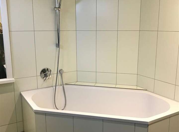 Die Böden sind mit Fliesen und Teppich ausgelegt.