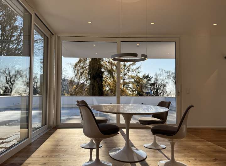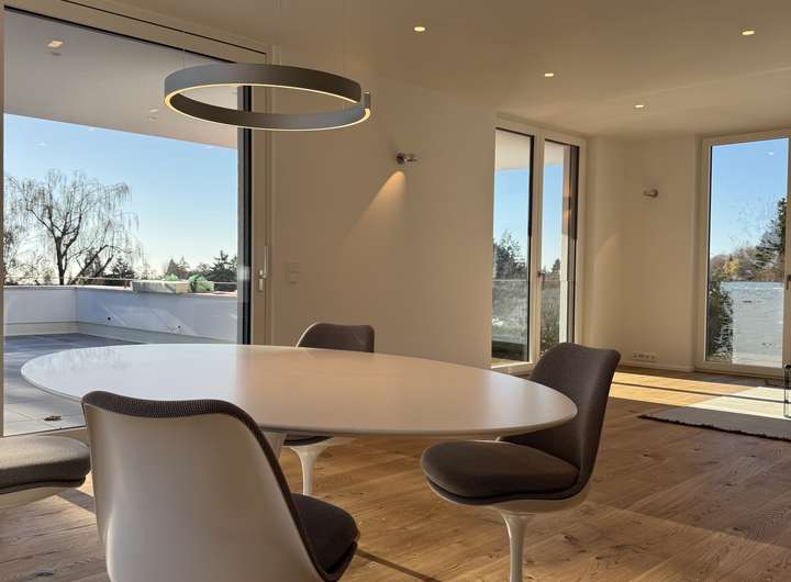 Die aufwendige Innenarchitektur erfüllt höchste Ansprüche an Wohnkultur. Sie lässt mit hochwertigen Ausstattungsdetails keine Wünsche offen. Lichtdurchflutete Räume, intelligenter Grundriss und exquisit verarbeitete Materialien fügen sich zu einem stilsicheren Wohnambiente. Vom Schlafbereich aus genießt man einen wunderbaren Blick ins Grün. Beste Luftqualität und spürbar bestes Klima sind unbezahlbare Mehrwerte. Dieses elegante Penthouse verbindet maximalen Komfort mit größtmöglicher Privatsphäre.
