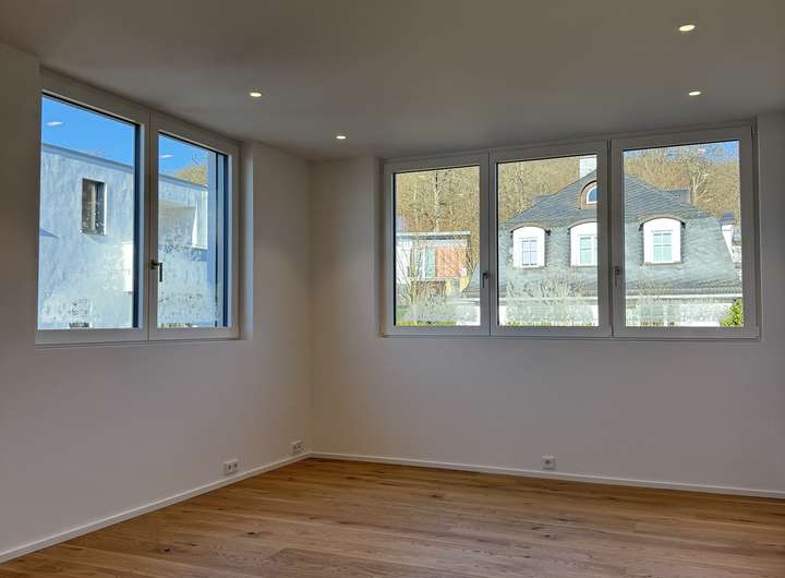 Lichtdurchflutete Räume durch größtenteils bodentiefe Fenster mit 3-Scheiben Isolierverglasung sowie Glasbrüstungen
