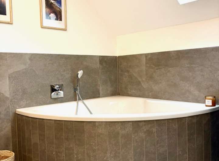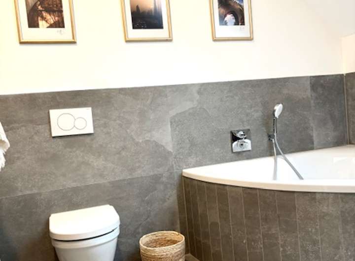 Das Haus ist mit Eichenparkett /Landhausdielen; die Terrasse mit Holzdielen in Echtholzoptik ausgestattet. Das Masterbad hat eine große Eckbadewanne mit begehbarer Dusche und elektrischem Handtuchhalter. Das Kinderbad verfügt über eine große begehbare Dusche und einem elektrischen Handtuchhalter. In beiden Badezimmern wurden moderne große Fliesen verlegt.