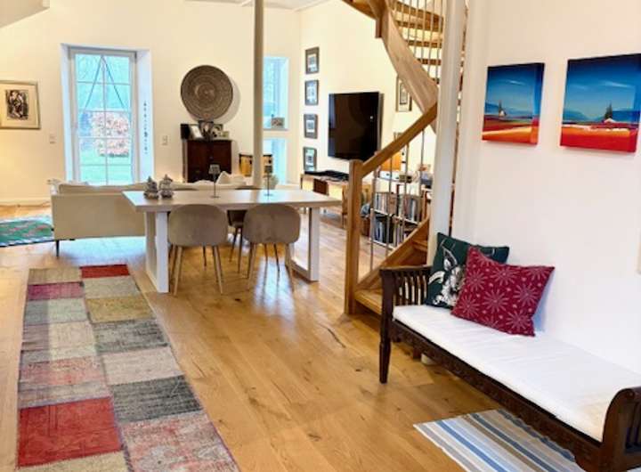 Dieses außergewöhnliche Landhaus, in dem ursprünglich Zuchtstuten untergebracht waren, können Sie ab dem 1.02.2026 beziehen. Die Immobilie befindet sich auf einem denkmalgeschützten Gutshof, dessen Stallgebäude komplett zum Wohnraum umgebaut wurden. Bei dem Ausbau hat man besonders viel Wert auf Qualität gesetzt und den Charme der alten Gebäude bewahrt. Die hohen Kappendecken im EG und die Deckenhöhe von ca. 3,30 m im 1. OG sind einzigartig. Nach Komplettsanierung besticht die Immobilie durch eine luxuriöse Innenausstattung. Neben vier attraktiven Zimmern zählen zu dem Objekt zwei Badezimmer und ein separates Gäste-Bad. Ein Hauswirtschaftsraum, der für Waschmaschine, etc. vorgesehen ist, befindet sich im EG. Das Haus wurde in 2021 / 2022 komplett saniert - nur die Außenmauern sind geblieben und die denkmalwürdigen Elemente in dem geschichtsträchtigen Gebäude. Die hochwertige Einbauküche ist mit Markengeräten ausgestattet.