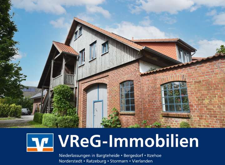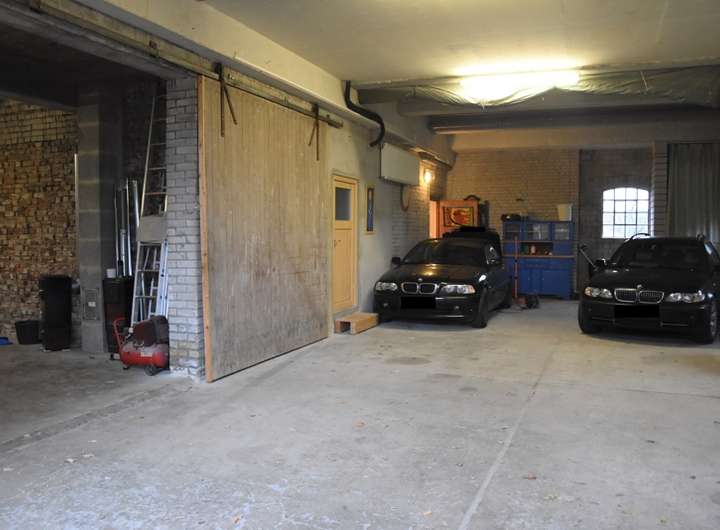 Das Erdgeschoss wurde in den 50er-Jahren als Scheune mit Stahlbetondecken und massiven Wänden aus Rotklinker und Kalksandstein erbaut. Hier befindet sich nun eine Halle mit ca. drei Metern Einfahrts- und Deckenhöhe, einem Werkstattraum mit Ofenheizung und weiteren beheizbaren Nebenräumen. Eine Umnutzung des Untergeschosses in Wohnraum wurde bereits durch einen Bauvorbescheid zugesichert. Alternativ bietet sich die große Nutzfläche zum Stellen von Wohnmobilen und/oder Hebebühnen oder der Nutzung als beispielsweise Partyraum an. Praktisch: Ein Aufenthaltsraum sowie ein weiterer großer Abstellraum schließen sich direkt an der Hallenfläche an, hier kann man sich nach dem Werkeln an kalten Tagen aufwärmen.