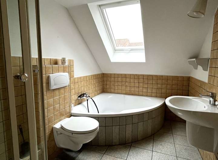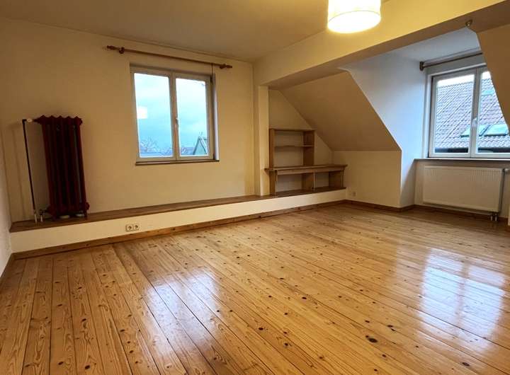 Das Dachgeschoss wurde 2005 ausgebaut. Es entstanden zwei schöne Wohnungen, die beide einen gemütlichen und individuellen Charme versprühen. Die Gemütlichkeit wird u.a. durch die Gauben und Dachschrägen, die Holzböden sowie die vorhandenen Holzöfen erzeugt. Die Wohnungen verfügen über separate Strom-, Wasser- und Gaszähler und Gasbrennwertheizungen mit Warmwasserbereitung. Der Zugang zu den Wohneinheiten erfolgt über eine eigene Außentreppe und einen großzügigen Balkon. Die Fassade und die Holzkonstruktionen sind aus unbehandeltem Lärchenholz. Die beiden Carports fügen sich im Gesamtbild der Immobilie gut ein, da sie mit dem Dach integriert wurden. Die vordere Wohnung ist für 600 € kalt vermietet. Die hintere Wohnung ist frei und kann selbst bezogen oder erneut vermietet werden.