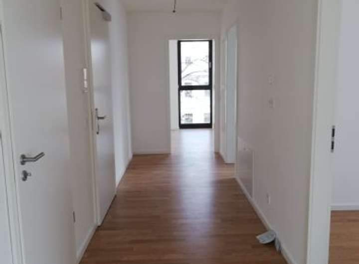 Ein großzügiger Garderobenbereich begrüßt beim Betreten der Einheit seine Bewohner. Das knapp 26 m² große, großzügig geschnittene Wohnzimmer mit angegliederter offener Küche (optional abtrennbar) mit Fenster verfügt über einen direkten Zugang zum einladenden ca. 12 m² großen Balkon.