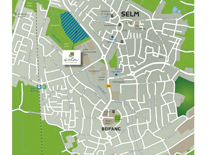 Unweit der denkmalgeschützten alten Bergmannssiedlung liegt der Marktplatz mit einem bunten Angebot an Geschäften. Und Selm verfügt auch über eine Altstadt mit Gastronomie und Ausgeh-Potenzial.