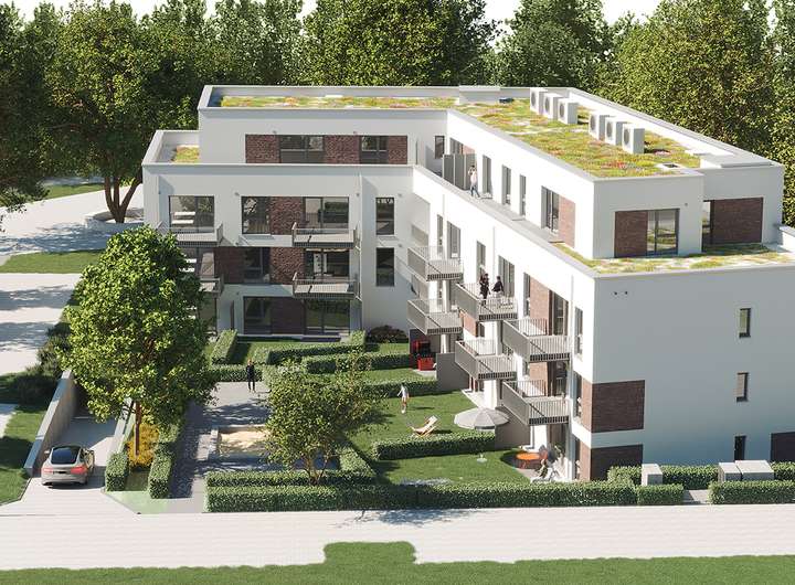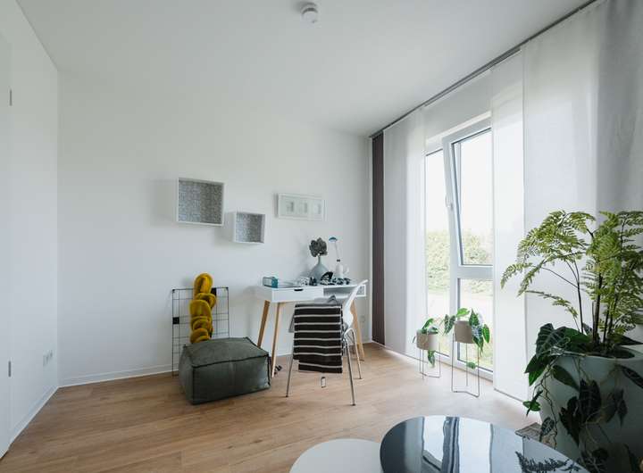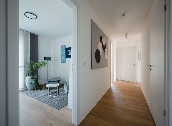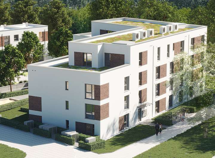 Die Innenansichten sind tlw. aus ehemaligen Musterwohnungen und nicht vollumfänglich auf die Großzügigkeit der geplanten Wohnung übertragbar.