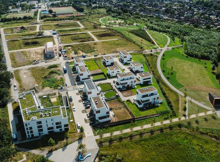 Das Baugebiet hält, was sein Name verspricht und grenzt unmittelbar an den Auenpark. Dieser erst 2020 fertiggestellte öffentliche Park bietet neben einem re-naturierten Bachlauf üppige Grünflächen und Angebote für Freizeit- und Fitnessaktivitäten. Neben Kinderspielplätzen, einer „Sehstation“ und dem 10 Meter hohen Auenhügel mit begehbarer Lichtkuppel laden fest installierte Sonnenliegen zur Entspannung ein. Und der angrenzende Sandforter Weg ist als Fahrradstraße ausgewiesen, die zukünftig auch das Baugebiet durchziehen wird.