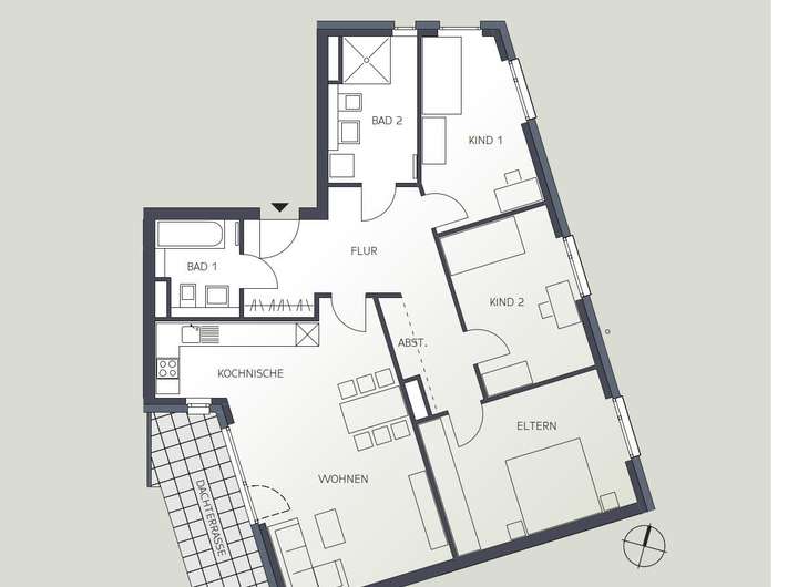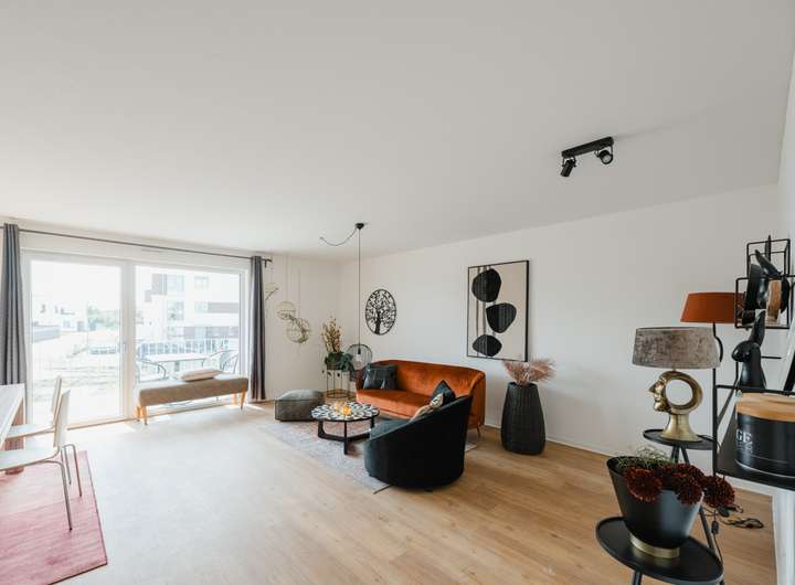 Willkommen auf der Sonnenseite des Lebens! Im Staffelgeschoss des Mehrfamilienhauses im ersten Bauabschnitt erwartet Sie diese ideal geschnittene 4-Zimmer-Penthousewohnung. Die Terrasse mit Blick auf den Auenpark und der großzügigen Raumaufteilung mit einem offenem Grundriss lässt sich hier besonders hervorheben. Ein einladender Eingangsbereich mit Flur bietet ausreichend Platz für eine Garderobe und auf Wunsch für einen Abstellraum. Zentral gelangen Sie vom Flur aus in die privaten Räume sowie in das Wohn-Ess-Zimmer mit integriertem Küchenbereich. Die beiden großzügigen Bäder verwöhnen mit großer Dusche oder Badewanne sowie jeweils Handtuchheizkörpern.