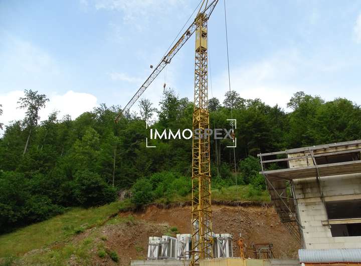 Ein Haus sowie zwei Garagen wurden bereits teilweise fertiggestellt in Massivbauweise. (Rohbau)