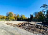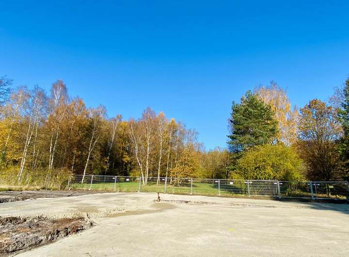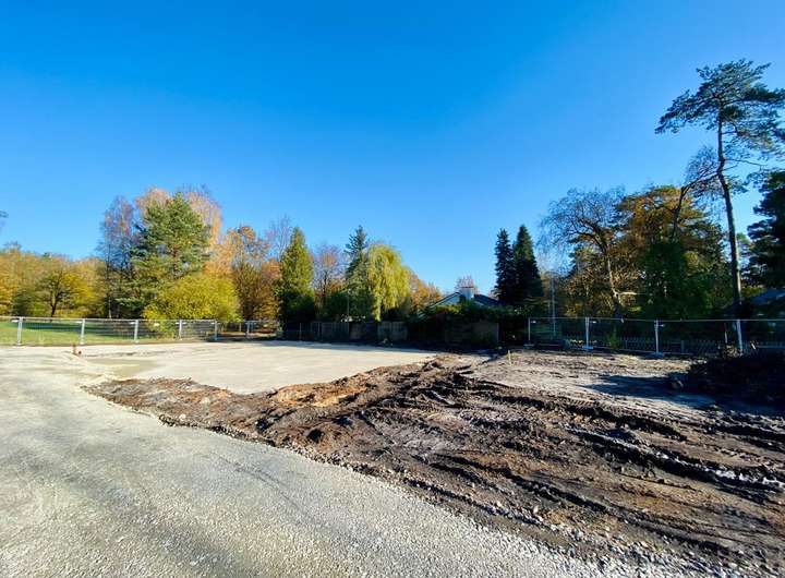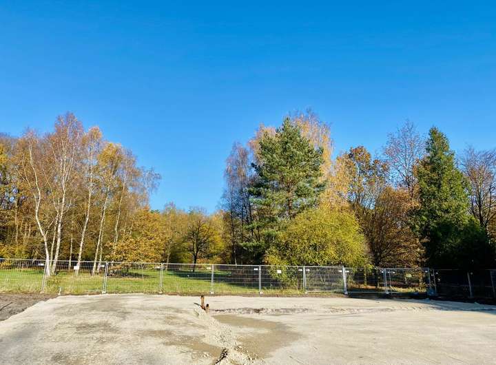 - Die Bäume auf dem Baufeld wurden gefällt und Wurzeln entfernt
