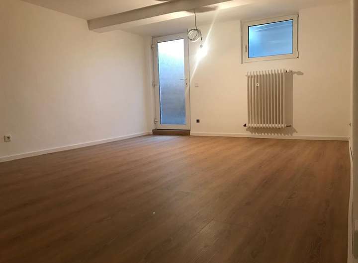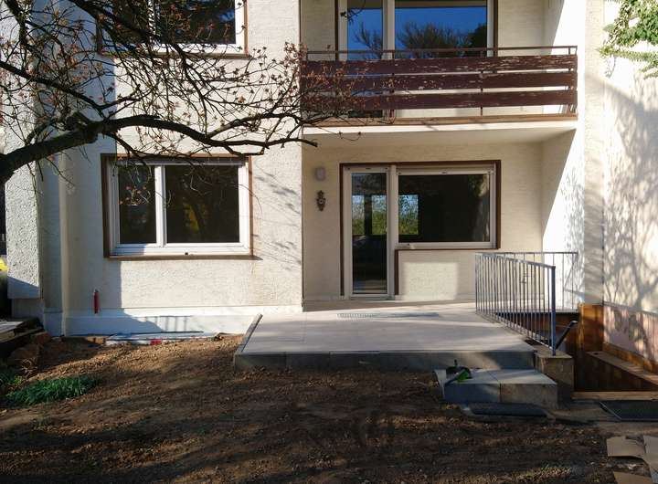 Im Erdgeschoss befindet sich ein lichtdurchflutetes Wohnzimmer, die Küche und ein Duschbad. Von der Küche und dem Wohnzimmer gibt es einen direkten Zugang auf die neu gestaltete sonnige Südterrasse und den ca. 50m² großen eingewachsenen Garten.