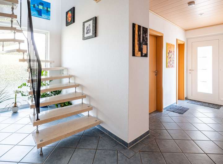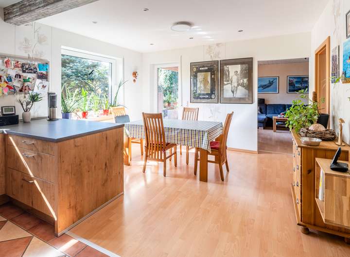 Besonders hervorzuheben bei diesem Objekt ist der große Garten sowie die Lage in einem verkehrsberuhigten Bereich/Spielstraße. Geschäfte des täglichen Bedarfs, Ärzte, Schulen sowie Kindergärten sind schnell und gut zu erreichen. Folgende Renovierung/Sanierungsmaßnahmen wurden in den letzten Jahren durchgeführt: - 2006: Fliesen in Flur, HWR und Küche neu - 2007: Betonboden, Fliesen, Putz und Fenster in Garage und Werkstatt neu - 2008: Velux-Dachfenster neu - 2009: Garagendach komplett neu - 2011: Nebeneingangstüren neu - 2023 : Heizungsanlage neu - 2011: Gäste-WC neu - 2011: Photovoltaikanlage (10,6 KW) neu - 2012: Carport neu - 2013: Elektroverteilung neu - 2014: Einbauküche neu - 2016: Fenster und Rolladen im Obergeschoss neu- 3-Fach-Verglasung - 2016: Fenster in Küche neu und Haustür neu - 2016: Bau einer 2. großen Garage mit Werkstatt neu - 2018: Bau einer Dachgaube und Badezimmer im Dachgeschoss neu - 2020: Auffahrt, Garagentor und Tür neu - Glasfaseranschluss