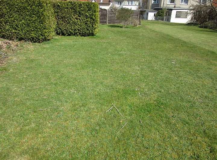 Attraktives, schmales Baugrundstück, für ein Tiny House geeignet, in toller Lage, Rasenfläche, Büsche und Hecken vorhanden.