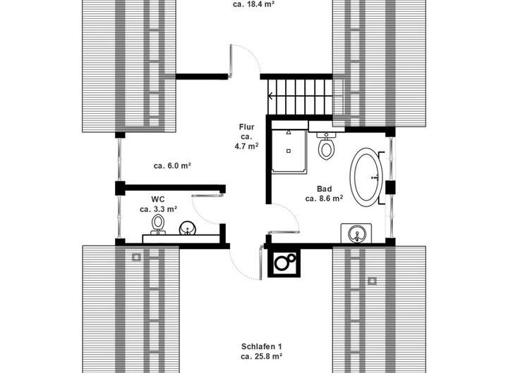 Die ausgeschriebene Gesamtfläche ist nicht auf eine genormte Berechnung laut WoFIV oder II. BV zurückzuführen. Es handelt sich vielmehr um eine Berechnung nach dem sogenannten "Sylter Maß". Dieses gibt alle im Haus enthaltenen Flächen wieder, gemessen an den Fußleisten (Erd-, Dach u. Untergeschoss). Für die gemachten Angaben wurde die Flächenberechnung des Eigentümers zugrunde gelegt.