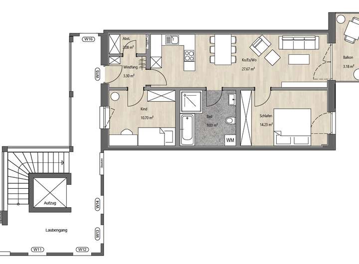 Die 24 verschiedenen Wohneinheiten bieten auf 3 unterschiedlichen Stockwerken zwischen 57 und 95 Quadratmetern Wohnfläche - genug Lebensraum für Einzelpersonen, aber auch Familien mit Kindern.