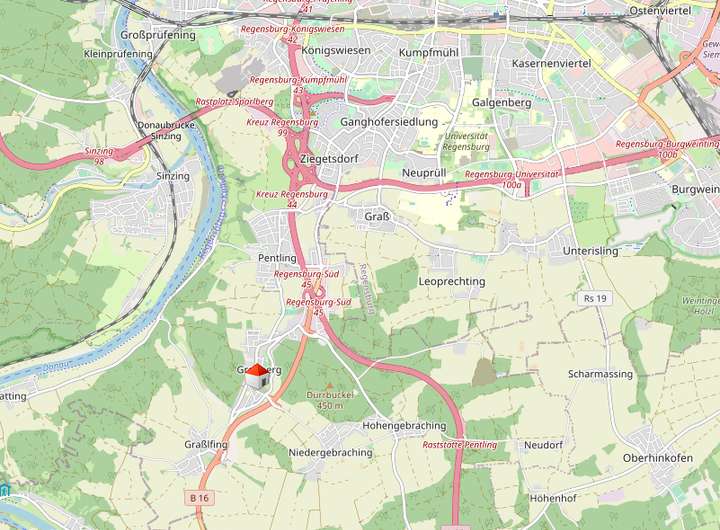 Die beiden natur- und zugleich stadtnahen Grundstücke befinden sich in der nur 10 km südlich von Regensburg gelegenen Gemeinde Pentling im Ortsteil Grossberg. Pentling bietet für seine rund 7.000 Einwohner alle Dinge des täglichen Bedarfs, wie Supermärkte, Arztpraxen und eine Grundschule. Die unmittelbare Nähe zur Donau sowie die kurze Anfahrtszeit zur Domstadt verleihen der Gemeinde einen besonders hohen Freizeit und Erholungswert. Abgerundet wir die gute Lage der Objekte durch die sehr gute Anbindung an den öffentlichen Nahverkehr sowie an die A93 und B16.