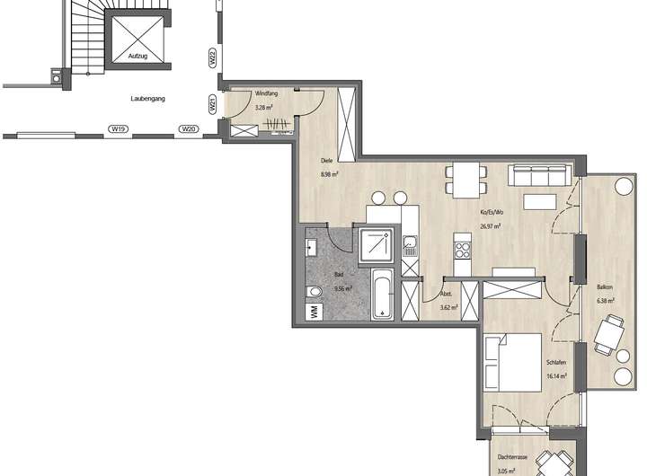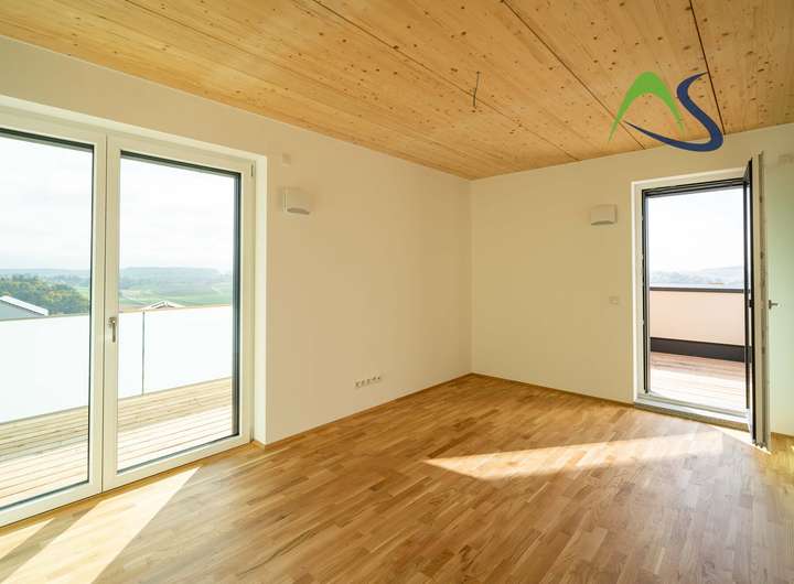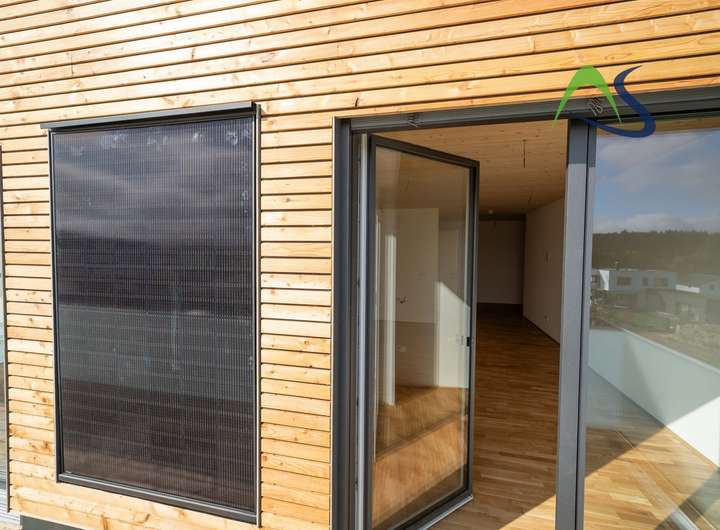 Moderne und altersgerechte Zweizimmerdachterrassenwohnung mit großem Süd-/Ostbalkon inkl. eigener Photovoltaikanlage, sowie Süd-/Westdachterrasse.