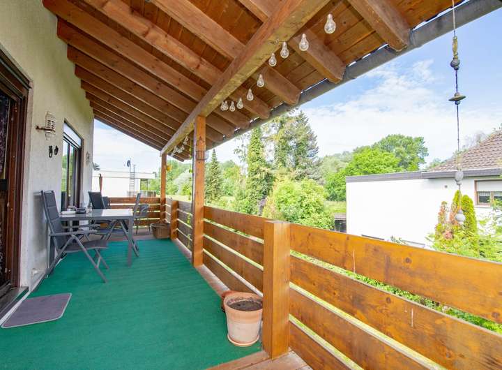 • Überdachter Balkon mit traumhaftem Blick auf den Rhein