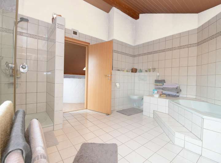 Ein großes Tageslichtbad mit Dusche und Badewanne sorgt für Wellnessmomente im Alltag.