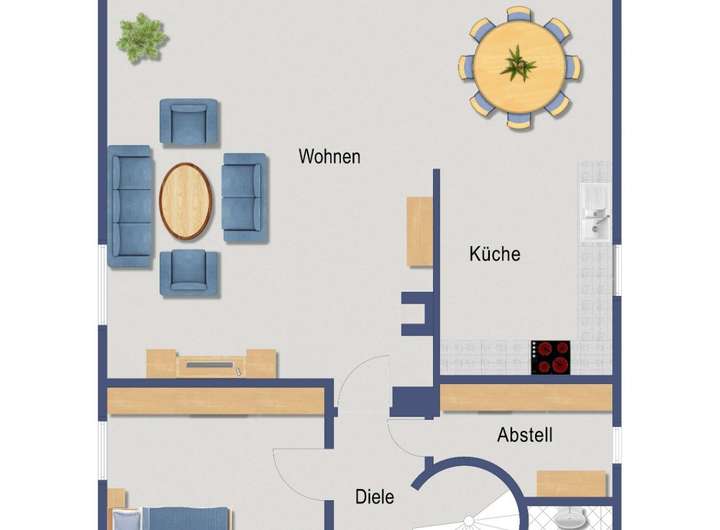 Beim Betreten der Wohnung empfängt Sie eine helle Diele, von der aus alle Räume zugänglich sind.