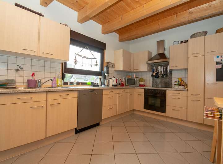 • Offene Wohnküche inkl. Einbauküche und neuem Kaminofen – ideal für gesellige Abende und harmonisches Wohnen