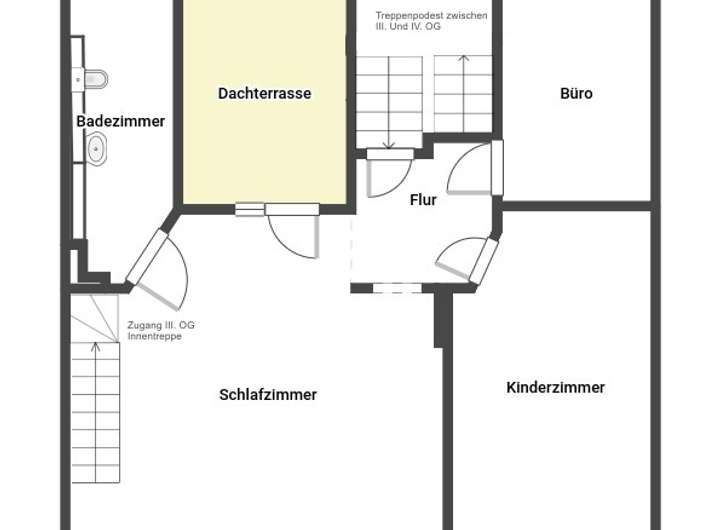 Das III. Obergeschoss verfügt über eine Wohnung, die über die ganze Etage verläuft. Gleichzeitig verfügt sie über einen direkten Zugang zu dem 2017 ausgebautem Dachgeschoss. Die Wohnfläche beider Etagen beträgt zusammen ca. 157 m, davon ca. 80 m² im III. Obergeschoss und ca. 78 m² im Dachgeschoss. Beide Wohnebenen sind durch eine in der Wohnung liegende Holztreppe verbunden, können aber auch separat über die Treppe im Hausflur erreicht werden. Im III. Obergeschoss liegen ein Großes Wannenbad, ein Wohnzimmer mit Kaminofen, eine große Küche und ein Speisezimmer. Auch hier beträgt die Raumhöhe ca. 2,80 m. Über die Holztreppe im Wohnzimmer ist das Dachgeschoss erreichbar. Hier stehen 3 Zimmer, ein Flur, eine Diele, ein WC mit Waschbecken und eine sehr schöne Dachterrasse zur Verfügung. Von der in Südostrichtung liegenden Dachterrasse hat man einen sehr schönen Blick auf die Havel, die Brandenburg, neben mehreren Havelkanälen, durchfliest. Zur Straßenseite ist eine Gaube eingebaut, ansonsten verfügen die Räume über Dachfenster. Die Raumhöhe liegt hier bei 2,50 m. In beiden Etagen sind Dielen verbaut und die Bäder sind gefliest.