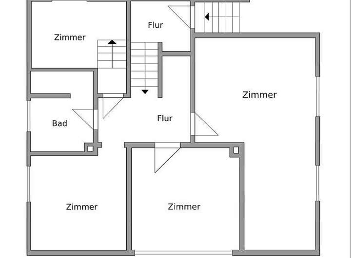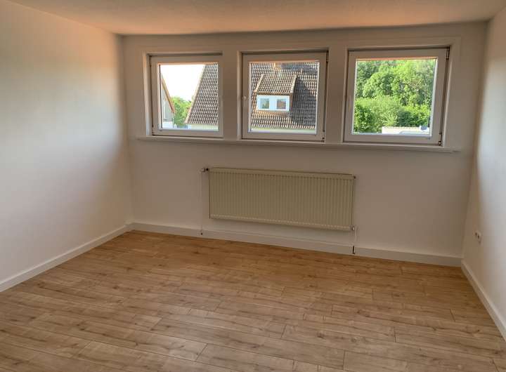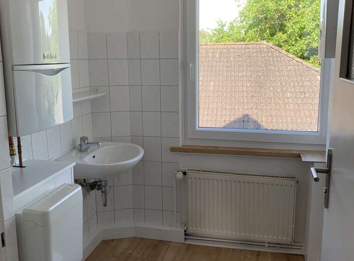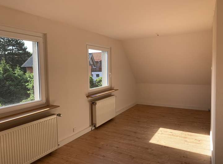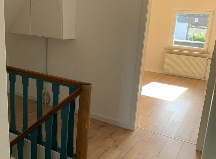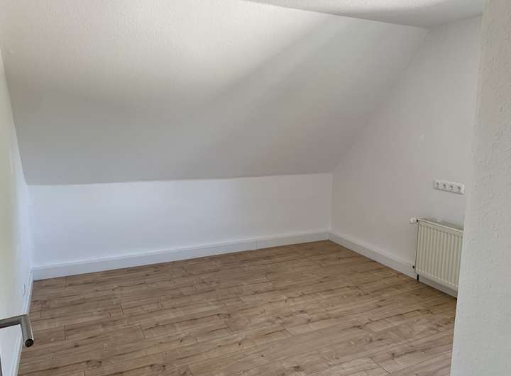 Die Wohnfläche im Obergeschoss verteilt sich auf insgesamt vier Zimmer und einem Duschbad mit einer Gesamtfläche von 68 m², wobei Küchenanschlüsse in einem der Zimmer noch vorhanden sind.