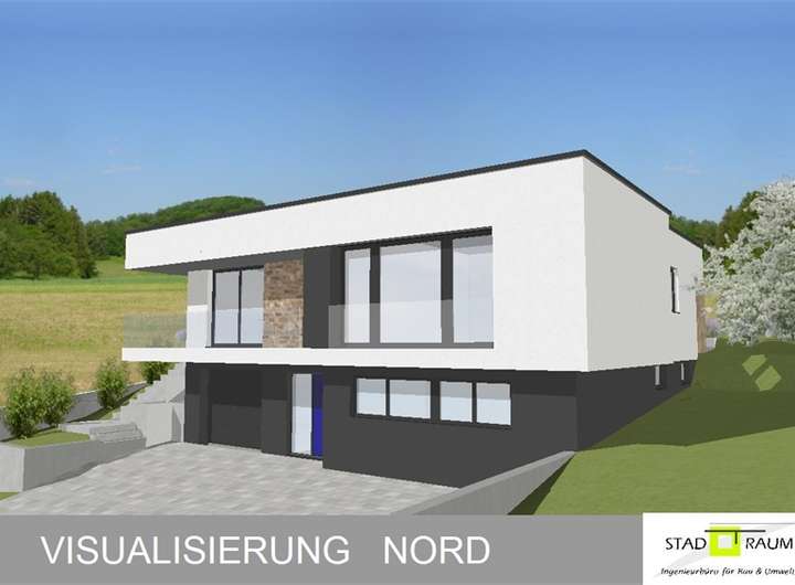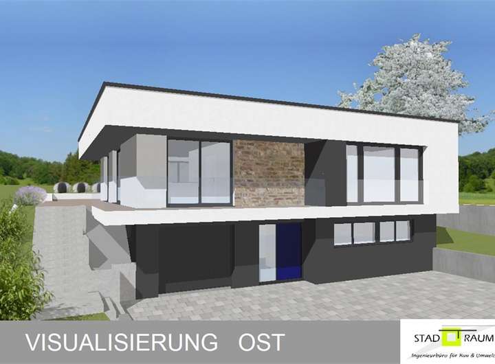 Geplant ist ein moderner Bungalow mit Einliegerwohnung und integrierter Garage.
