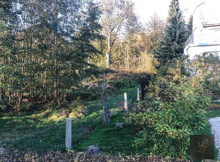 Ein Baugrundstück in Königshain-Wiederau, unmittelbar neben der seit 1935 kleinen, familiär geführten Hauschuhmanufaktur. Es liegt am Rande einer sehr locker bebauten Waldhufensiedlung mitten im Grünen.
