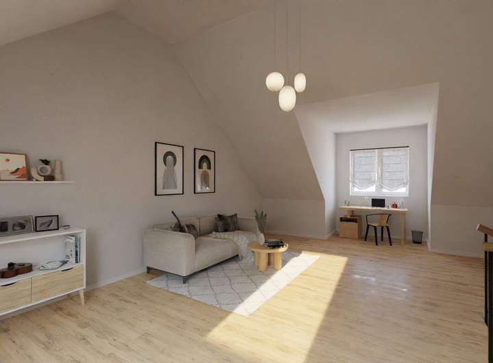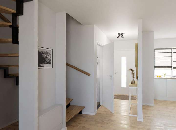 Massiv gebaut für ein dauerhaft gutes Wohngefühl – dieses moderne Doppelhaus bietet Ihnen auf drei Etagen maximalen Komfort. Im Erdgeschoss erwartet Sie ein großzügiger Wohnbereich mit offener Küche. Die angrenzende Terrasse ist ideal für entspannte Abende im Freien. Ein praktisches Gäste-WC und eine Nische für Ihre Garderobe runden das Erdgeschoss ab. Im Obergeschoss erwarten Sie zwei helle und freundliche Zimmer. Das moderne Tageslichtbad mit Badewanne und bodengleicher Dusche schafft eine natürliche Atmosphäre. Homeoffice, ein weiteres Kinderzimmer oder kreativer Raum – im ausgebauten Dachgeschoss finden Sie Platz, um sich zu entfalten. Für weiteren Stauraum nutzen Sie den großzügigen Keller.