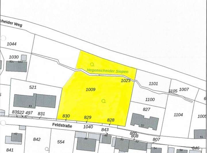 Objektbeschreibung: Das Grundstück ist begrünt und in Teilen mit Bäumen und Sträuchern bewachsen. Durch das Grundstück fließt teilweise der „Hegenscheider Bach“. Die Zuwegung des Grundstücks erfolgt über die Straße „Hegenscheider Weg“ und „Feldstraße“. Laut schriftlicher Auskunft des Bauplanungsamtes der Stadt Altena, besteht der bestandskräftige B-Plan Nr. 1 „Bauzonenplan vom 23.07.1958“ mit folgenden Festsetzungen: • Allgemeines Wohngebiet (WA) • maximal 2 Vollgeschosse • Grundflächenzahl (GRZ) 0,3 • Offene Bauweise Im FNP ist der Bereich als Wohnbaufläche („W“) dargestellt. Der offizielle Bodenrichtwert liegt bei € 85,-/m².