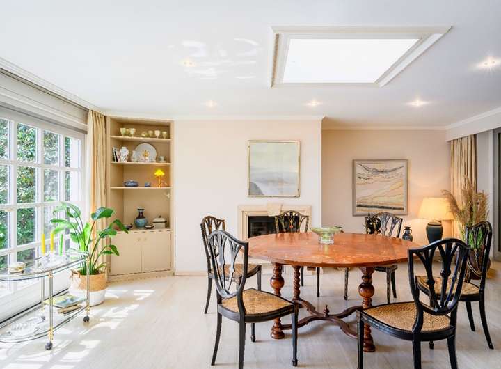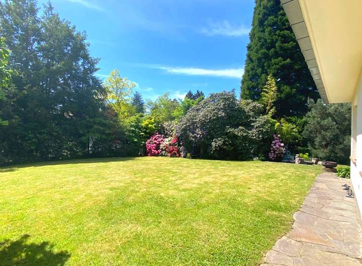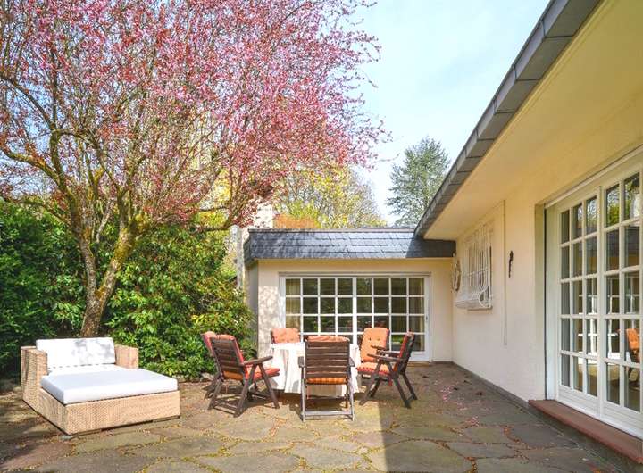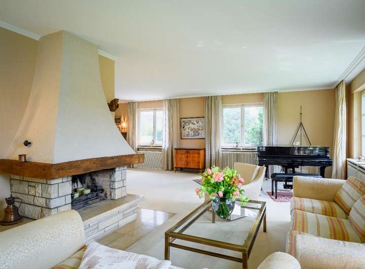 Diese charmante, freistehende Villa beeindruckt durch ihre lichtdurchfluteten Räume und das großzügige Raumkonzept. Besonders hervorzuheben ist das repräsentative Foyer und der großzügige Wohnbereich, der herrliche Ausblicke ins Grüne gewährt und für eine strahlende Helligkeit sorgt. Die zwei offenen Kamine im Esszimmer und im Wohnzimmer schaffen eine warme Atmosphäre und laden zum Verweilen ein. Das Haus besticht durch seine durchdachte Raumaufteilung und das große Potenzial zur weiteren individuellen Gestaltung. Hier findet sich auch der große Innenpool mit Sauna der mit geringem Aufwand in zwei herrliche Kinderzimmer mit eigenen Bädern und eigenen Gartenausgängen umgewandelt werden kann.