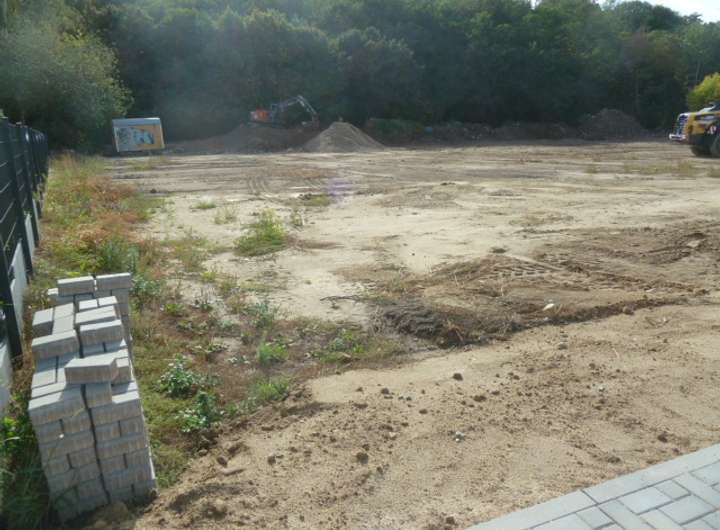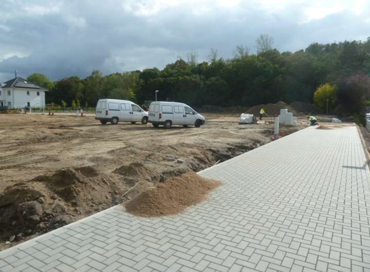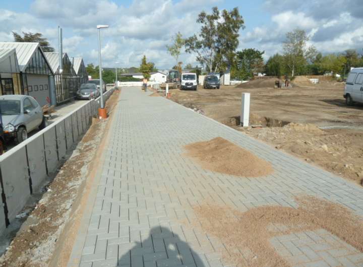 Durch die Erschließungsstraße (Gemeinschaftsfläche) sind die neuen Baugrundstücke komplett erschlossen, das heißt sämtliche notwendigen Versorgungsleitungen wurden bis 1 m hinter die jeweiligen Grundstücksgrenzen verlegt. Die Straßenbeleuchtung erfolgte vorschriftsmäßig ebenso wie die endgültige Befestigung der Straße durch Dränpflaster.