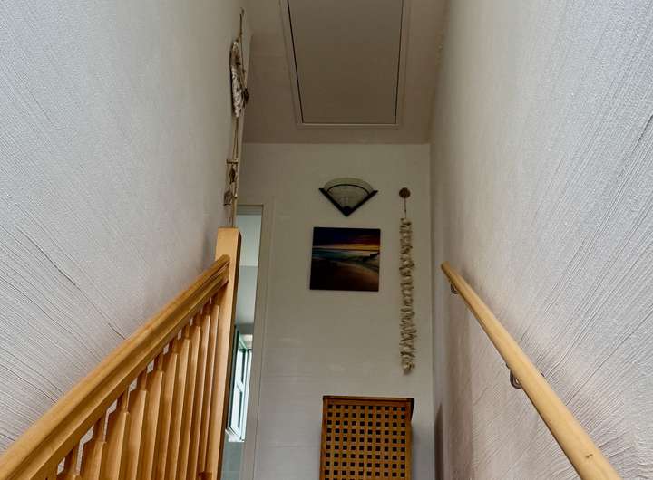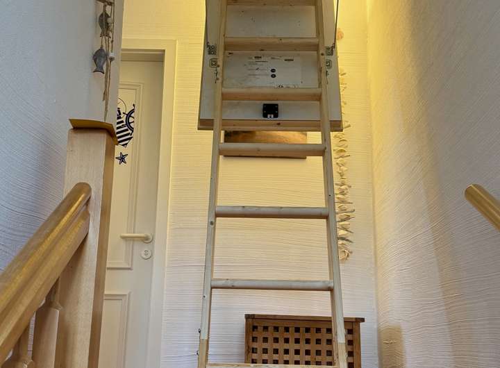 Dachboden : über eine Leiter begehbarer Dachboden ( siehe Foto ) Besonders interessant für Eigentümer, die Ihre privaten Sachen im Haus lassen möchten .