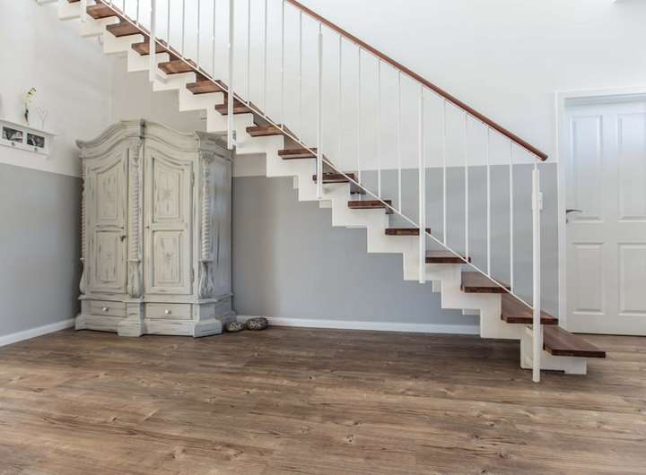 Dieses Haus bietet Platz für die ganze Familie. Schon im Eingangsbereich ist das Ankommen sehr offen und warm. Viel Licht dringt durch den offenen Treppenraum mit einer wunderschönen Treppe ein.