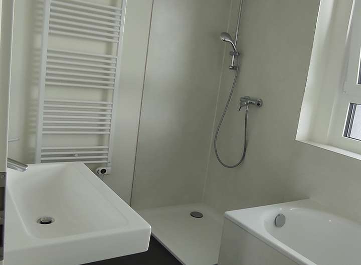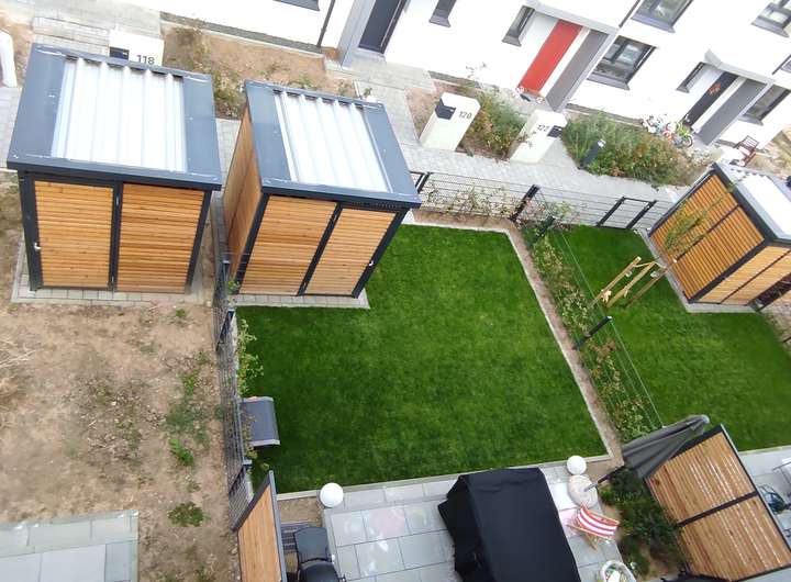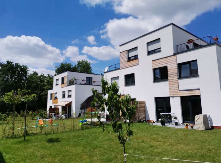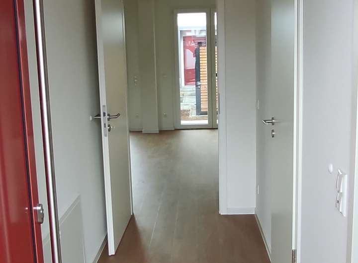 barrierefreier Zugang zum Objekt möglich. Durch den Auto-Stellplatz, der sich direkt am Haus befindet, können Sie Ihre Wocheneinkäufe entspannt in die bereits vorhandene Einbauküche tragen. Das Haus wurde 2023 erbaut und wird per Fernwärme beheizt. Die monatliche Miete für die Immobilie mit Grundstück beträgt 2.870 Euro.