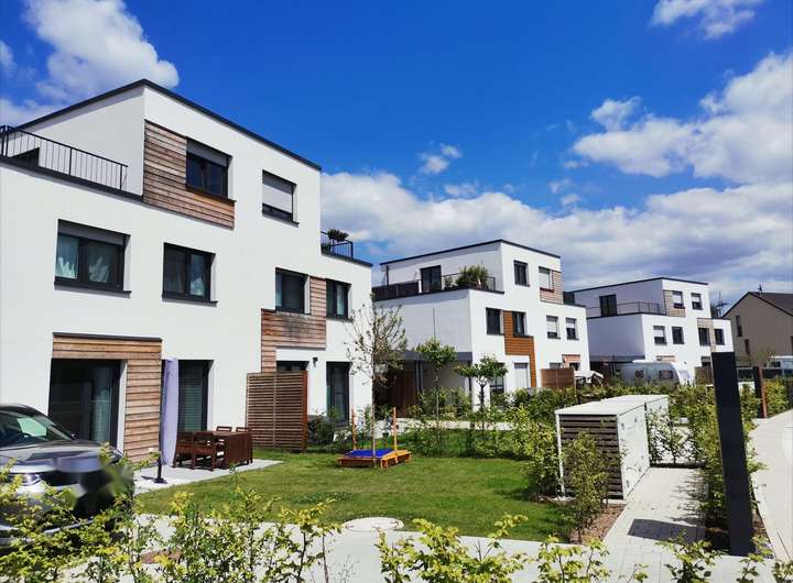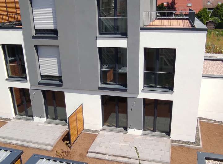 Bei dieser Immobilie handelt es sich um einen Erstbezug. Das dreistöckige Reihenendhaus zeichnet sich durch eine luxuriöse Innenausstattung aus und kann ab sofort bezogen werden. Neben zwei Badezimmern und einem separaten Gäste-WC zählen fünf hübsche Zimmer zu dem Haus. Außerdem ist ein