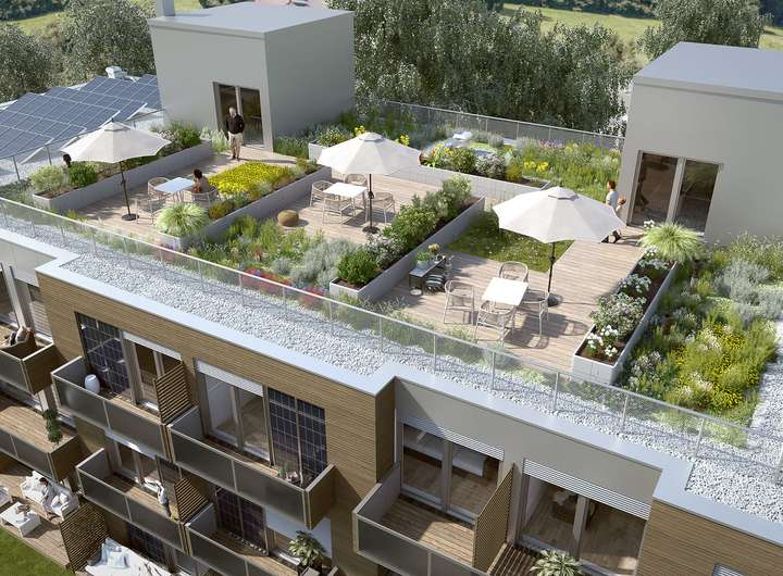 Die 20 Wohneinheiten in Parzelle 9 verteilen sich auf 3 Stockwerke und bieten mit Wohnflächen zwischen 34 und ca. 103 m² Raum für Familien mit Kindern, Ehepaare oder Einzelpersonen jeder Altersklasse. Miteinander wohnen für Generationen, das ist das Konzept von VIO P9. So verfügt das Grundstück neben dem Gemeinschaftsraum im Haus über einen Dachgarten mit definierten Flächen, die zum gemeinsamen Verweilen einladen.