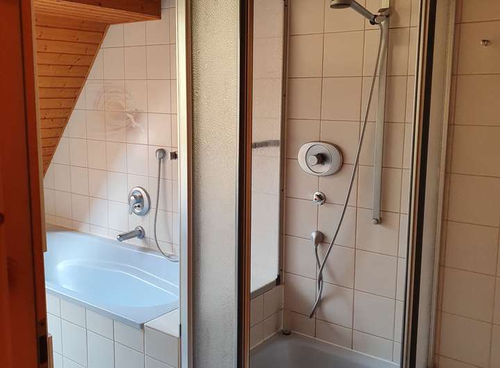 Desweiteren gibt es ein separates WC und ein Tageslichtbad mit Wanne und Glasdusche.