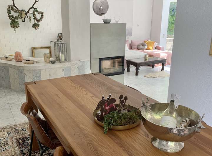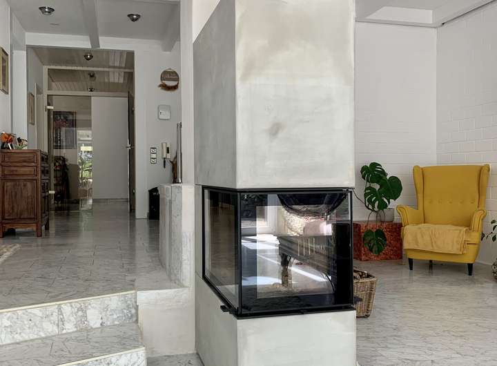 Ein ganz neuer Panorama Holzofen mit 10 kW Nennwärmeleistung sorgt für eine herrliche Wärme und macht das Gas fast schon überflüssig. Dieser ist außerdem noch mit einem Powerstone Speicherblock aufgerüstet der die Wärme effizient speichert und langsam wieder abgibt.