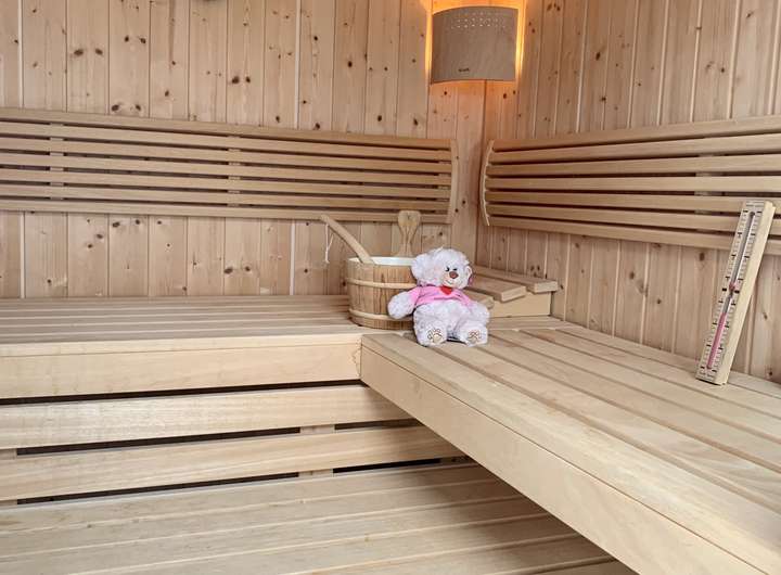 Für gemütliche Tage stehen eine Whirlpool Badewanne, sowie eine Sauna bereit.
