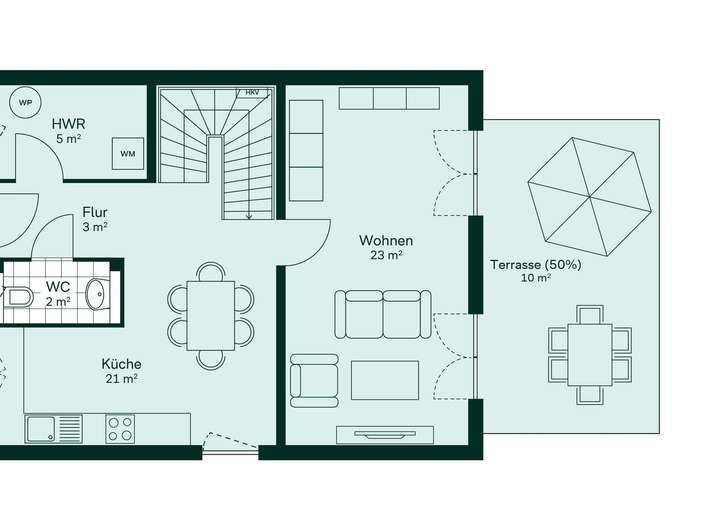 Im Erdgeschoss wird aus Alltag Familienzeit: Der offene Wohnbereich mit direktem Zugang zur Terrasse lädt zum Spielen, Lachen und Zusammensein ein – drinnen wie draußen. Die Küche liegt mittendrin und bietet genug Raum, dass alle mithelfen oder einfach neugierig naschen können. Im Obergeschoss geht es genauso lebendig weiter: Drei Zimmer warten darauf, mit Leben gefüllt zu werden – ob Kinderzimmer oder Schlafzimmer. Das moderne und helle Familienbad mit Dusche und Badewanne passt perfekt zu den Routinen am Morgen oder dem abendlichen Planschen. Und wer noch mehr Platz braucht, hat eine weitere Etage für neue Wohnideen: Vielleicht ein Rückzugsort für Eltern, ein Spielraum unter dem Dach oder ein Arbeitszimmer, jetzt oder in Zukunft. Nutzen Sie das zusätzliche Raumangebot ganz nach Ihren Bedürfnissen. Gerne beraten wir Sie zum Ausbau des Dachgeschosses.