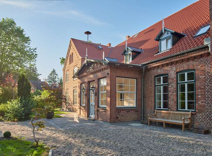 Mit viel Liebe zum Detail wurde dieses Alte Inspektorat in die heutige Zeit geführt. Das Anwesen erstrahlt wieder in seinem früheren Glanz und bietet mit seinen sechs Wohneinheiten auf über 700 m² eine moderne Nutzung an. Seine Fassade, in warmen Farben gehalten, scheint die Geschichten vergangener Tage zu flüstern, von herbstlichen Stürmen und stillen Sommern.