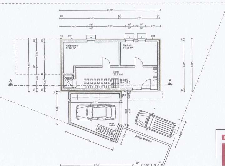Aufzug, Garage, Kellerraum, Technik.